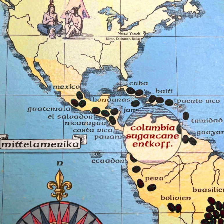 Eine wahre Rarität: Dieser Kaffee wird direkt in Kolumbien ganz natürlich mittels Zuckerrohr entkoffeiniert. Diese ursprüngliche und sehr schonende Entkoffeinierung erhält den einzigartigen fruchtigen und zugleich schokoladigen Geschmack der Kaffeebohnen.